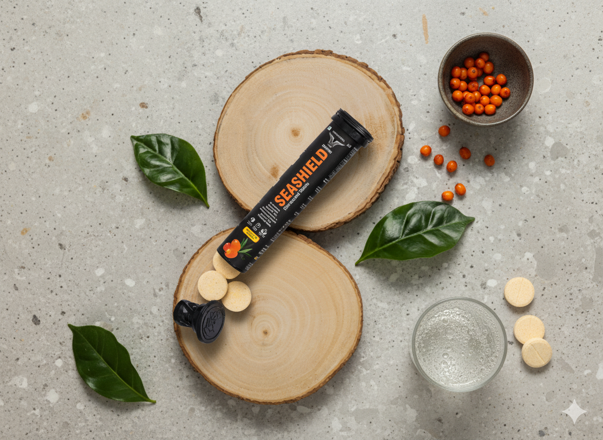 Badeyan’s Seashield Effervescent Tablets are a powerhouse of natural energy, organic wellness, and a healthy glow. Enriched with Sea Buckthorn, Ashwagandha, Vitamin C, Vitamin D3, L-Lysine, and other essential nutrients, Seashield is designed to keep you active, refreshed, and full of vitality every day.
